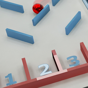A simple game, each level you start will show you deflectors and buckets, time will start count, when you ready you touch a specific area so the timer stop, deflectors hidden, and a red marble ball shown, you have to remember how the deflectors were look like so you can decide in which bucket will the ball stand if we drop it, the defectors will affect its way, once you choose a destination all deflectors will shown again, and a gravity to down will applied, if you were correct with your choose a next level will unlocked, if not .. a restart button will appear.