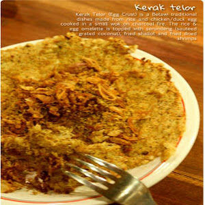 Kerak telor (English: Egg crust) is a Betawi traditional spicy omelette dish in Indonesian cuisine. It is made from glutinous rice cooked with egg and served with serundeng (fried shredded coconut), fried shallots and dried salted shrimp as topping. It is considered as a snack and not as a main dish. The vendors of kerak telor are easily the most ubiquitous during annual Jakarta Fair and it has also become a must-have menu item for visitors at the event.What's new in Egg Crust (Kerak Telor) Recipe 1.0