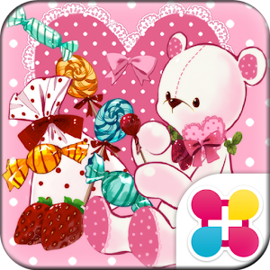 Adorable white teddy bear sitting on pink and white polka dots! Strawberries and candies add to the sweetness.Personalize Your Wallpaper and Icons With +HOME,